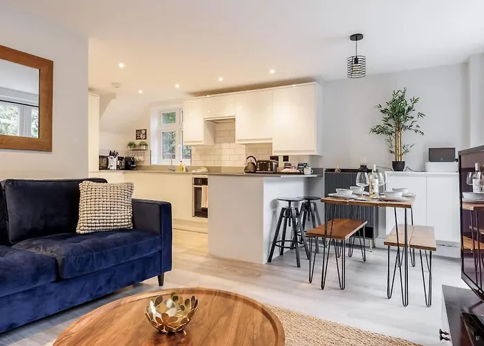 El The Coach House - Beautiful And Spacious Outside Decking Bournemouth, situado a 25 minutos a pie de Club de golf Parkstone, cuenta con un aparcamiento para los que viajan en coche. St John's Church se encuentra muy cerca del apartamento de 66 m² y a 5 km del aeropuerto Bournemouth.